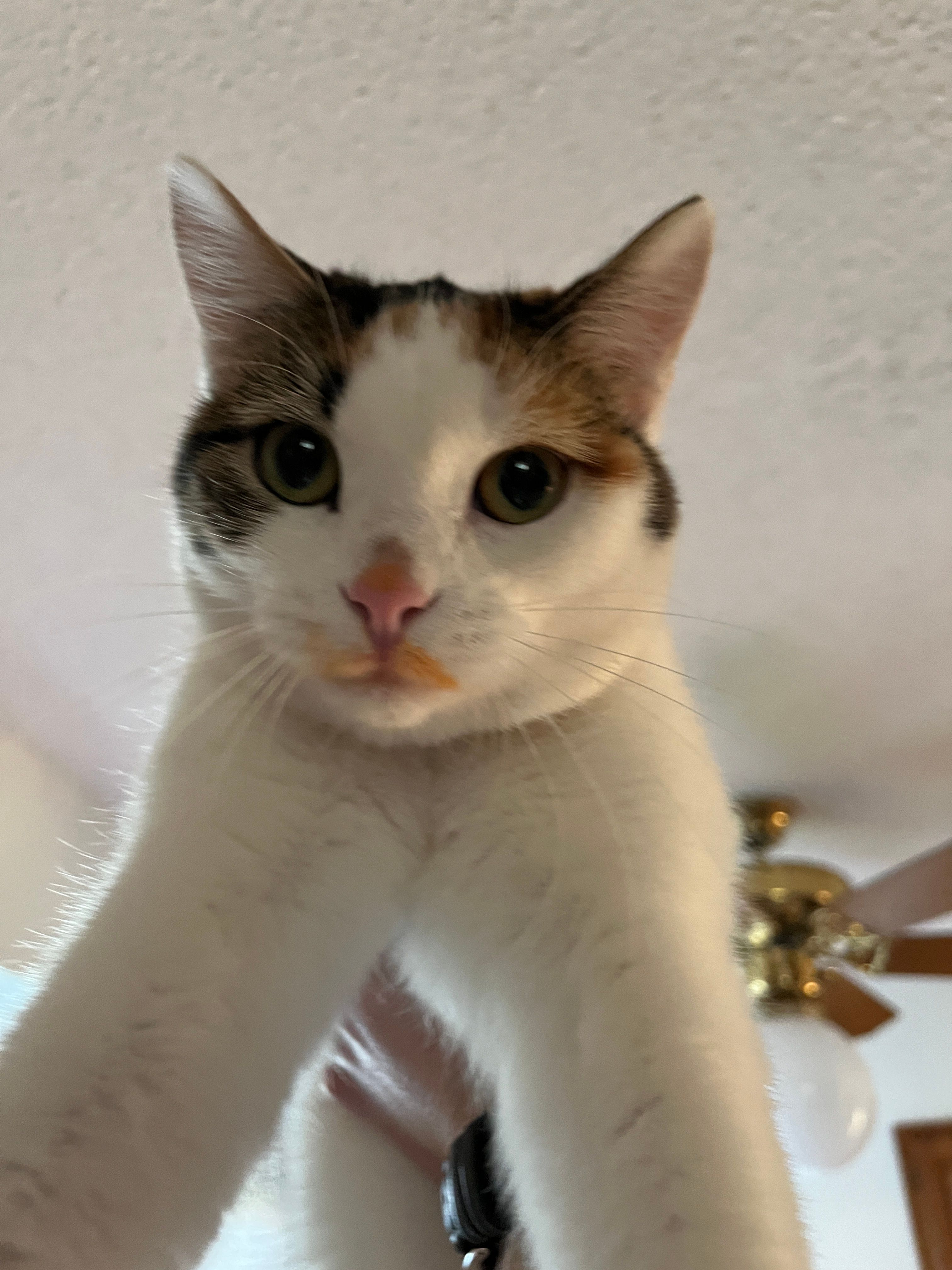 Pasta sauce, by lapping up a bowl of water that once held pasta sauce but is now soaking in the sink