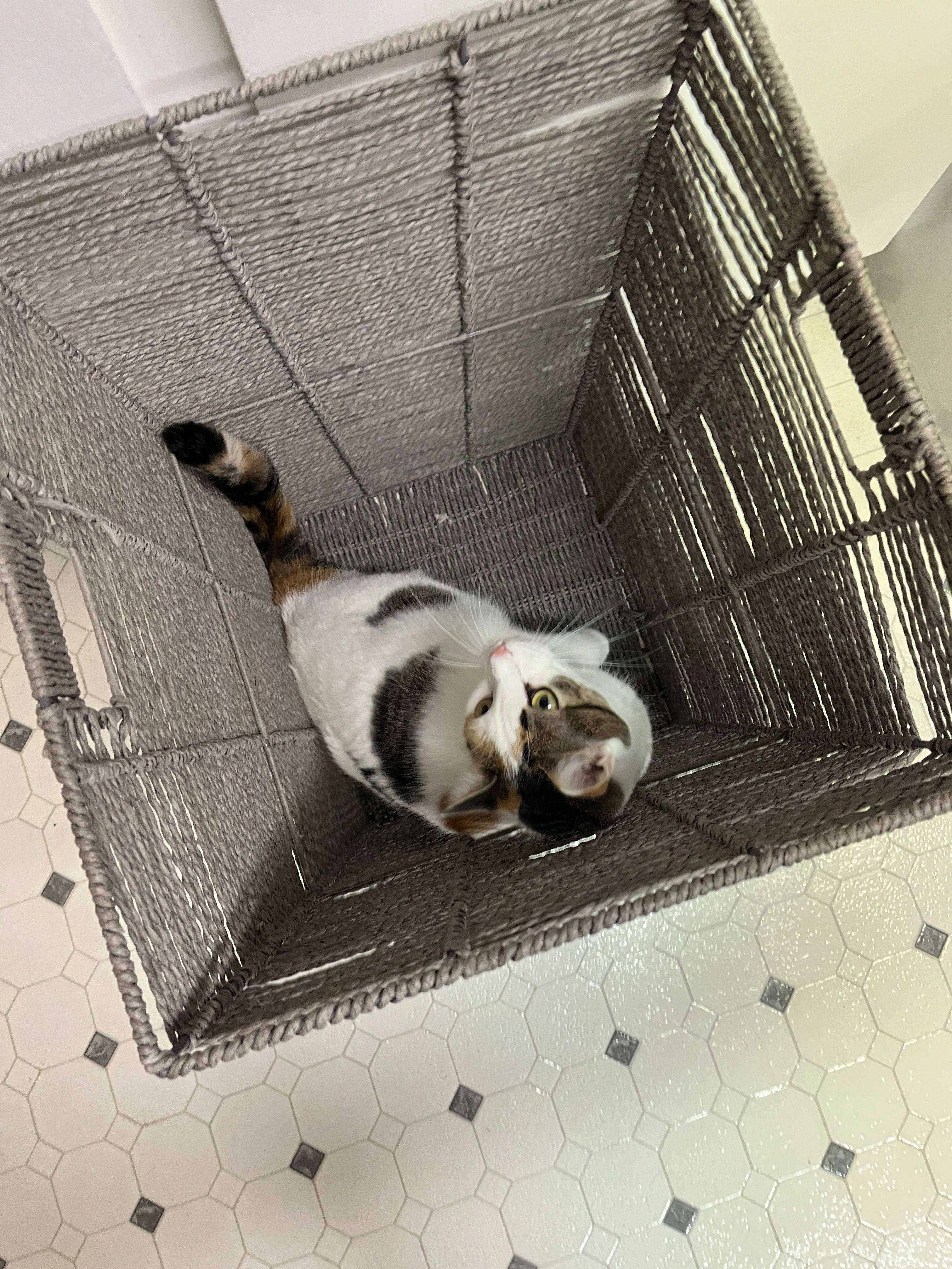 A cardboard box, ideally one not containing food