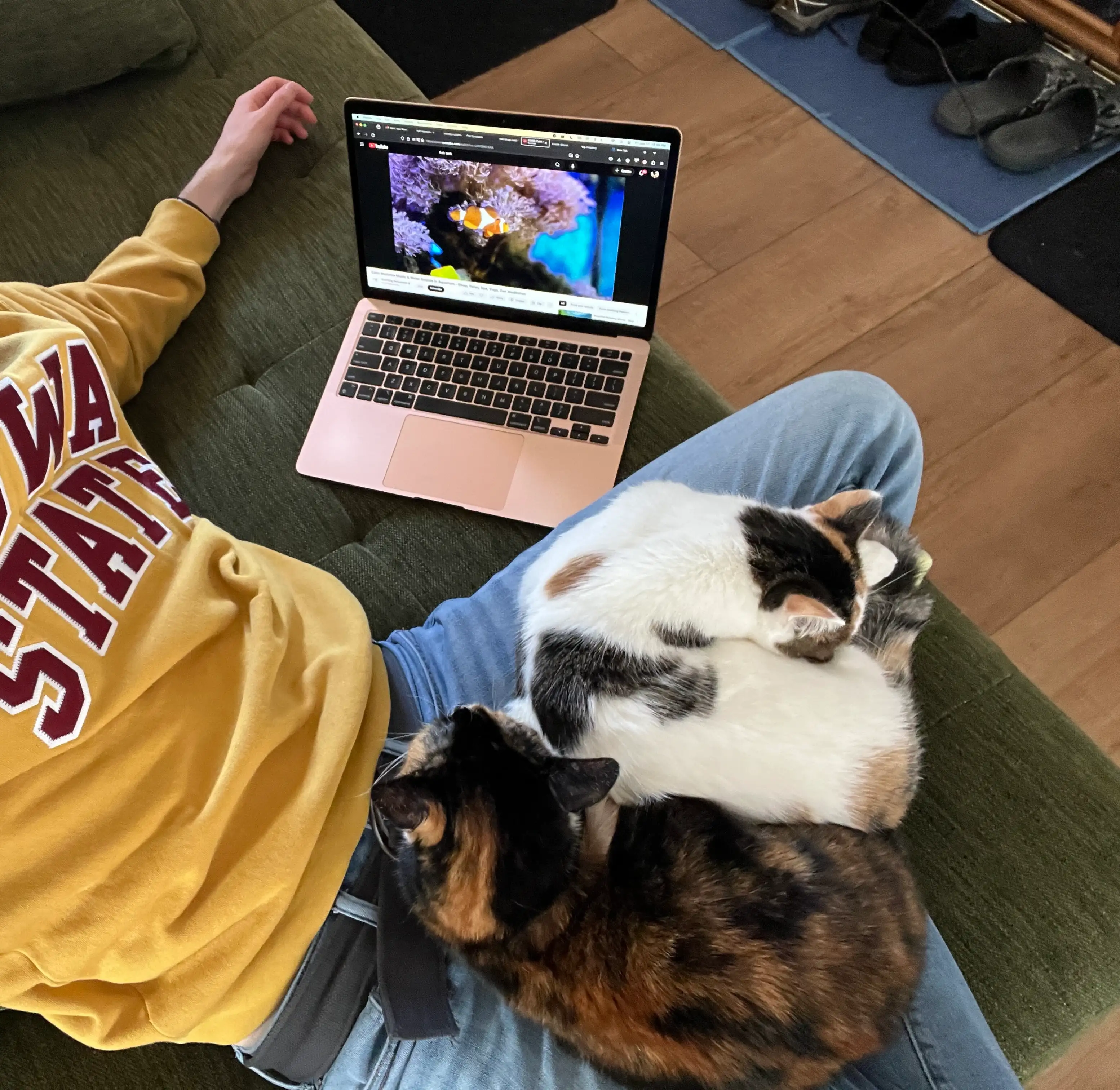 - On the human's lap, but only if the other cat is already there so it's crowded~
